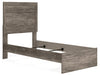 With its clean-lined look and modern attitude, this queen panel bed is a fresh style awakening. A warm gray hue over replicated oak grain easily complements other furniture finishes. The simple, unadorned profile is given depth and dimension with the addition of plank-style moulding on the headboard—proof that beauty lies in the details.