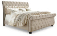 Of great and sophisticated stature, this queen upholstered bed is homey and full of substance. Exaggerated rolled tops on the headboard and footboard make a memorable statement. Textural upholstery is elevated with button tufting. Neutral linen color is ready to complement the bedding of your choice. Bun feet add the finishing touch. Mattress and foundation/box spring sold separately.