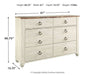 View full detailsThis dresser and mirror set is the ultimate statement piece for your coastal cottage or shabby chic inspired retreat. A whitewash finish on the dra...