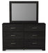 View full detailsWith its clean-lined look and modern attitude, this dresser and mirror is a fresh style awakening. A warm charcoal hue over replicated oak grain ea...