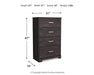 View full detailsWith its clean-lined look and modern attitude, this chest of drawers is a fresh style awakening. A warm charcoal hue over replicated oak grain easi...
