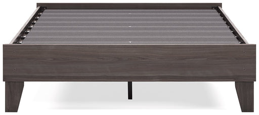 Dare to take minimalism to the max. This full platform bed has a richly relaxed feel thanks to its honey brown finish over replicated wood grain. M...