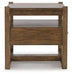 This end table sits comfortably at the intersection of modern lodge and farmhouse aesthetics. Your warm and welcoming disposition is reflected in the charming architectural elements and light brown glazed finish. Even with its poise, this table remains practical. A drawer and unique open shelf design encourage you to store and display in style.
