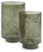 Create an even cozier ambiance in your home with this candle holder set. Their green sanded glass makes the soft glow of electric or real candles all the more beautiful. Stunning when displayed as a duo or standing alone, these holders are a simple way to upgrade the style of your space.