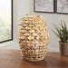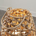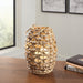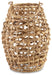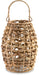 With its woven natural rattan and open-and-airy design, this lantern appeals to those turned on by a natural, bohemian sense of style. Holds one flameless pillar candle (not included).