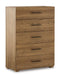 Taking an organic approach to a curated bedroom aesthetic, this warmly neutral chest of drawers has a natural appeal. Sleek bar pulls in a blackened iron finish accentuate the drawer fronts, providing subtle contrast to the clean-lined design. With its aura of casual refinement, this piece elevates the everyday in your restful retreat.