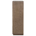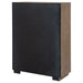 Chrome finish bar pulls add a touch of shine to the neutral barley brown finish of a modern five-drawer chest. Delivering ample storage with a compact footprint, the chest features a streamlined silhouette with mitered trim that creates a sense of depth. The top provides an easy spot for decor or a jewelry box that brings a personal touch. The soft wood grain finish of the chest complements in a variety of bedroom settings, making this a versatile choice for your home. The look is complete with a recessed base that provides a touch of height and airy presence.