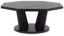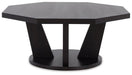 For the ultimate in casual contemporary styling, accent your sofa or loveseat with this chic coffee table. Designed with an octagonal top and trapezoid-shaped legs, its geometric elements create a bold, eye-catching look.