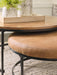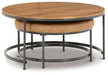 Make your nest that much more luxurious with this coffee table and ottoman nesting set. The table's light brown mango veneer pairs beautifully with the caramel color faux leather ottoman for a rustically refined look that feels right at home.