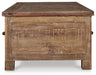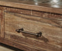 Part casual chic. Part richly rustic. This coffee table combines a clean-lined profile with a delightfully distressed finish. Made with reclaimed wood, its various brown tones and whitewashed highlights add subtle visual intrigue. This simply stylish piece does double duty as a storage space, with four drawers opening to reveal ample space for throw blankets, knickknacks and anything else you want to tuck out of sight.