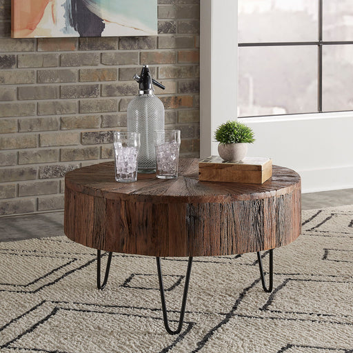 Liberty FurnitureIn stockCanyon accent cocktail table makes a bold statement to any room. Crafted of solid reclaimed mango with powder coated black hairpin metal leg for ye...