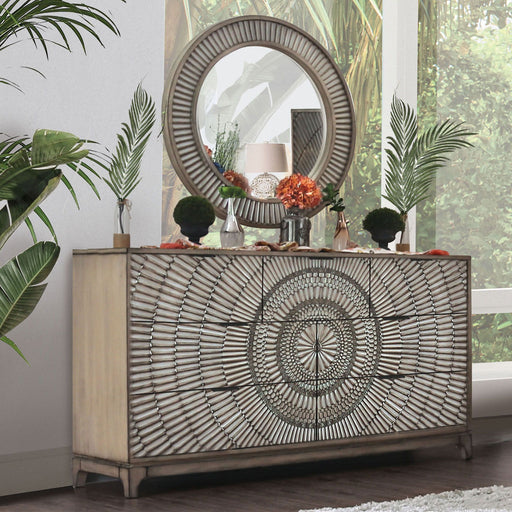 Furniture of AmericaIn stockThe glamor is in the details of this dresser from the Manar Collection. Featuring a decorative, circular pattern, only adding to opulence of the de...