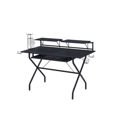 ACMEIn stockUpgrade your home office with the contemporary look of the black, sleek Erma computer desk. The x-shaped metal tubing gives this desk a neat, compl...