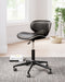 The finishing touch to any home office, this contemporary office chair offers comfort and style. The chair features a cushioned seat and backrest with a clean contoured shape, trimmed with a brilliant chrome-tone metal finish. Upholstered in black faux leather, this chair pairs perfectly with any space.