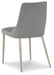 This dining chair draws from classic design motifs to craft a fresh, contemporary look. Soft gray velvet upholstery is accented by channel stitching on the back, while warm goldtone legs add a luxe touch. Contoured for your comfort, this chair is a tasteful take on modern opulence.