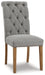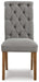 Simple sophistication is closer than ever with this dining chair. The chair is delightfully cozy with its light gray upholstered seat and carefully tailored button-tufted back, while the rolled top rail provides a little extra flair. The legs are finished in a neutral light walnut color for the finishing touch to this charming chair.
