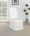 Put a stylish, somewhat formal spin on your dining room decor with a set of two classic parson chairs. Each features a tall back with an armless profile for impeccable comfort and elegance. The chair features plush foam padding, complete with neutral upholstery for a fresh, inviting presence at your dining table. The chairs showcase fully skirted silhouette, adding a touch of flowing movement. Tall, rolled backs ensure supportive seating for friends and family, wonderful for daily and occasional use.