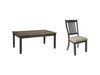 Set your sights on this dining set. The rectangular table, with six drawers for storing away smaller items, beautifully suits your storage needs. Its timeworn planked oak top creates a unique two-tone contrast, while tapered legs feature a sturdy foundation. The heavily textured black and oak finish is trend-right urban farmhouse style. Four solid wood upholstered dining chairs with slat backs complete this winning combination.