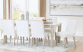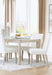 Dress your dining space in exceptional style with this dining package. Its two-tone styling, featuring a light bisque wood finish and white details, hits just the right tone for a crisp, contemporary look. The set’s modern design and sleek aesthetic make for a lovely ensemble.