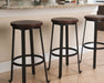 Rustic in feel with modern appeal, this timeless pub height bar stool is styled with fascinating flair. Veneered plank table surface serves up cool distressed character. Sculptural legs punctuated by L-shape feet form the industrial-inspired base.