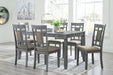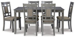 Make a dynamic statement with this dining set. Nothing says "cool" quite like its charcoal gray finish and the open lattice-back design on the six included chairs. With the sturdily made leg table and easy-to-clean polyester fabric on the chair, this set is suitably stylish and functional.