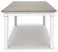 Embrace uncluttered character. This dining extension table emphasizes sheer simplicity with its clean-lined form and sleek self-storing leaf. Tranquil neutrals create a soothing two-tone finish. Designed to complement aesthetics from minimalist to modern farmhouse, this table is a simply striking feast for the eyes.