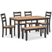 Gesthaven Dining Table with 4 Chairs and Bench (Set of 6)