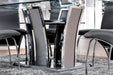 Curves define the foundation of this sophisticated dining set. The sweeping sides of the lacquer-coated table and the arched chrome chair legs combine to bring a modern feel to any space.