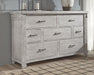 This dresser brings a fresh twist to the modern farmhouse movement. Its handsome, hearty profile is made all the more interesting with a staggered drawer layout. Through-tenon styling incorporates a welcome touch of American craftsman. And the easy on the eyes, distressed white finish? Just the tone for a soothing, serene bedroom retreat.