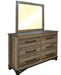 - Six-step, hand-painted finish in gray and brown tones for a "reclaimed wood" look.