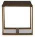 View full detailsChic and sleek, this end table satisfies your taste for contemporary design. Its warm brown top is neutral and refined, while an antiqued goldtone ...