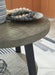 This round end table is an achievement in urban contemporary styling. Its ultra-cool design pairs a thick slab-style tabletop and an open lower shelf of solid pine wood with linear metal legs. A weathered gray finish keeps the aesthetic warm and inviting.
