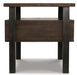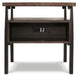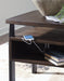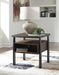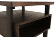 This end table opens our eyes to the beauty of contemporary style with a rustic attitude. Its clean-lined, open-concept design is dressed to impress with a two-tone finish that blends a grayish brown wire-brushed effect with a contrasting faux metal color.