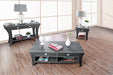 This table brings a visually pleasing touch of style and shape. A smooth gray finish matches well with silver drawer pulls and the swooping curled legs to give this set a contemporary feel. Storage drawers add a touch of utility to this piece.