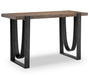 With echoes of equestrian inspired fashion, Bowden extends rustic hospitality with upscale appeal. Distressed iron has been artfully forged into a stirrup like ‘U’ shape and rests inside squared bases to uniquely support aged looking Rustic Honey wood tops on the rectangular end table, cocktail table and sofa table.