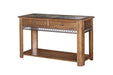 Madison’s wood frames capture autumn toned slate tops, with weathered metal aprons and convex stepped legs for great eye appeal.
