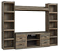View full detailsEntertain a rugged yet refined sense of style with this entertainment center pier. Rustic finish and plank-style details pay homage to reclaimed ba...
