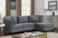 Create your dream couch with these modular pieces! This sectional is made up of pieces that allow you to extend in length; add a couple more of the optional armless chairs and see your living room space come to life. The corner pieces come with colorful patterned pillows, while the optional ottoman adds more seating or improved leg positioning for maximum relaxation and comfort.