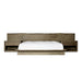 It takes a large room to house this awesome design. The headboard expands beyond the width of the bed to accommodate two night stands (sold separately). For establishing an impressive identity in any bedroom, this is it!