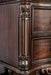 The elegant molding of this chest creates a stunning, and graceful bedroom environment. The espresso finished wood has been carved with a winding rope-like trim that has been brushed with gold to match the lavish drawer hardware. The rounded bun feet finish off the ensemble to create a dignified air.