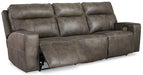 Masterful in its interpretation of modern luxury, this power reclining sofa is sleekly tailored in top-grain leather. It’s rich to the touch in tones of gray, inviting you to indulge in one-touch reclining. Design details polish off this lavish leather sofa. Subtle stitching accents and clean-lined track arms create contemporary character, inviting high-brow style into your home.