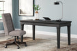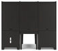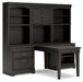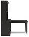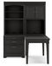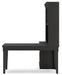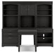 Make a style statement with this home office collection. This set includes a 63" desk connected to a wall unit with plenty of storage and display space. Its traditional design is updated with an on trend vintage black finish. The hutch with LED task light shines a light on those elusive reading glasses and other desktop items. Bookshelf, cupboard and cabinet space add up to a well-organized workspace, while USB and wireless charging make staying productive that much easier.