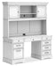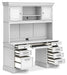 Make a style statement with this credenza and hutch. Its traditional design is updated with an on trend distressed whitewash finish. The hutch with LED task light shines a light on those elusive reading glasses and other desktop items. The credenza's eight drawers, including a drop-front keyboard tray, add up to one well-organized workspace, while USB and wireless charging make staying productive that much easier.