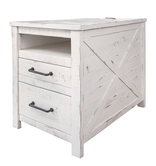 International Furniture DirectIn stock1 Drawer Chair Side TableProduct Features Featuring solid mango and pine wood. Beautiful multi-step, warm gray finish. Hand Applied Multi-Step Lacq...