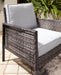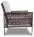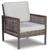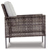High style crafted for low-maintenance living. Turn your outdoor space into a sweet retreat with this seating ensemble. The decidedly clean and contemporary furniture set entices in an easy-breezy gray resin wicker over a steel frame, for an upscale aesthetic that’s downright durable. Wrapped in high-performance Nuvella® fabric, the plush light gray cushions are indulgently comfortable yet so carefree.