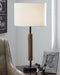 Delight in the sleek minimalism and sheer simplicity of this wood and metal table lamp. Cylindrical shaping is sure to round out a contemporary space beautifully.