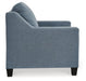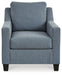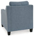 Sporting a clean and uncluttered aesthetic, this chair is a lovely choice in contemporary furniture. Elements include slim track arms with angled flair, sleek tapered feet and a feel-good flatwoven twilight blue upholstery that’s a refreshing change from the everyday ordinary.