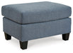 View full detailsSporting a clean and uncluttered aesthetic, this ottoman is a lovely choice in contemporary furniture. Feel-good flatwoven twilight blue upholstery...