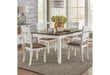 Feel at home with the Brook Bay optional six-piece leg table set. Crafted with excellence using rubberwood solids and mindy veneers, this set features a two-tone Carbon Gray and Textured White finish and consists of the leg table, four upholstered slat back side chairs, and the upholstered dining bench. The table has a fixed top that is supported by tapered block legs. A large full extension drawer is on both sides of the table. The drawer is felt lined and has a center divider creating two storage compartments. The chairs and bench offer a seat that is upholstered in 100% polyester Grey Linen fabric. The tapered block legs feature nylon chair glides to protect your flooring. Feel comfortable and elegant at the same time with the Brook Bay optional six-piece leg table set.
