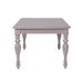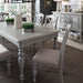 Be distinctively different with the Summer House rectangular table set. Crafted of poplar and rubberwood solids, this set features a dove grey finish and consists of the rectangular leg table and four splat back side chairs. The leg table features beautifully heavy turned legs and includes a removable 12” leaf. The chairs have a decorative splat back, a padded upholstered seat in grey linen, and beautifully round turned legs with nylon chair glides to protect your flooring. With cottage design always in fashion, the Summer House collection would make a great addition to any home.